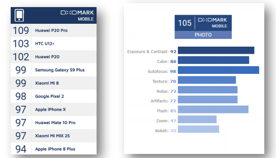 Q : 일부 사용자가 DxOMARK 공식 웹 사이트에서 보는 점수가 105 점이 아니라고 주장하는 이유는 무엇입니까?