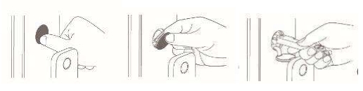 아래를 누릅니다. b. 스프링 다운이 열린 후 열쇠 구멍이 드러납니다. c. 비상 키를 사용하여 자물쇠를 엽니다.