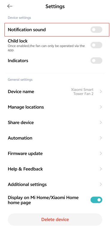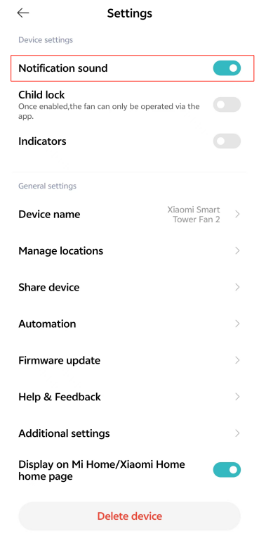 15. Q: Xiaomi Smart Tower Fan 2는 알림음 스위치를 지원합니까?