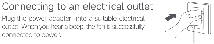 A: 전원 어댑터를 국제 표준을 충족하는 적절한 전기 콘센트에 꽂습니다. 신호음이 들리면 팬이 전원에 성공적으로 연결된 것입니다.