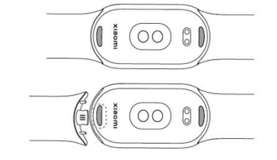 - 밴드 가 페어링되지 않은 경우 30분 동안 밴드를 그대로 두십시오 . 밴드가 자동으로 꺼지면 충전기를 사용하여 밴드를 다시 활성화하십시오. - 밴드가 페어링된 경우 Mi Fitness 앱에서 밴드 페어링을 해제하고 밴드가 자동으로 다시 시작될 때까지 기다렸다가 다시 페어링하세요 . 12. Q : 금속 보석이나 미네랄 보석과 함께 착용 Xiaomi Smart Band 8 수 있습니까? 표면이 손상됩니까? A: 밴드 쉘 의 기본 재료는 플라스틱이며 외부 표면은 고광택 금속 페인트로 도금되어 있습니다. 따라서 밴드는 본질적으로 플라스틱 제품입니다. 더 단단한 금속 장신구(예: 금속 밴드 s/밴드 s 또는 기타 불규칙한 금속 장신구) 또는 미네랄 장신구(예: 옥 밴드 s/밴드 s, 크리스탈 밴드 s/밴드 s) 등과 함께 착용하면 밴드 표면이 긁힐 수 있습니다. 부상, 타박상, 찰과상, 페인트 벗겨짐 등 따라서 밴드를 금속 장신구 또는 광물 장신구와 함께 착용하지 않는 것이 좋습니다. 양쪽 손목에 따로 착용할 수 있습니다. 13. Q : Xiaomi Smart Band 8의 손목 밴드가 흔들리면 어떻게해야합니까? 그것을 고칠 방법이 있습니까? A: 밴드 를 일상적으로 사용할 때 손목 밴드를 세게 당기거나 비틀거나 잡아당기는 것을 피해야 합니다. 이러한 비정상적인 사용 조건에서 손목 밴드 헤드의 포지셔닝 포스트가 변형되어 열리며 손목 밴드를 설치한 후 약간의 흔들림과 큰 틈이 생겨 제품 경험에 영향을 미칩니다. 이 상황이 이미 발생한 경우 다음을 수행하는 것이 좋습니다. (1) 아래 그림과 같이 손목 밴드의 헤드를 세게 꼬집어 열린 위치 지정 기둥을 복원할 수 있어 손목 밴드의 흔들림과 틈을 어느 정도 늦출 수 있습니다.