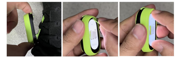 러닝 빈 :러닝 포드 하단에 있는 신발 버클 클립 버튼을 누르고 스프링 클립을 팝업한 다음 신발 끈에서 러닝 포드를 제거합니다. l 손가락 끝이나 탭을 사용하여 러닝 포드의 상단 또는 하단을 부드럽게 삽입하고 밴드 본체의 홈을 잡고 위로 당깁니다. l밴드의 본체를 실행 중인 포드에서 분리합니다.