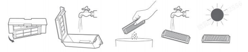 로봇 청소기는 다양한 센서로 덮여 있으며 주변 환경을 탐색하고지도를 작성하고, 장애물을 건너야하므로 장치가 더러워지면 즉시 젖은 헝겊을 사용하여 짜낸 물을 사용하여 주변 먼지를 청소하고 혼합 된 이물질을 제거하며 로봇 청소기의 교차 장애물 및 인식 기능을 복원 할 수 있습니다.