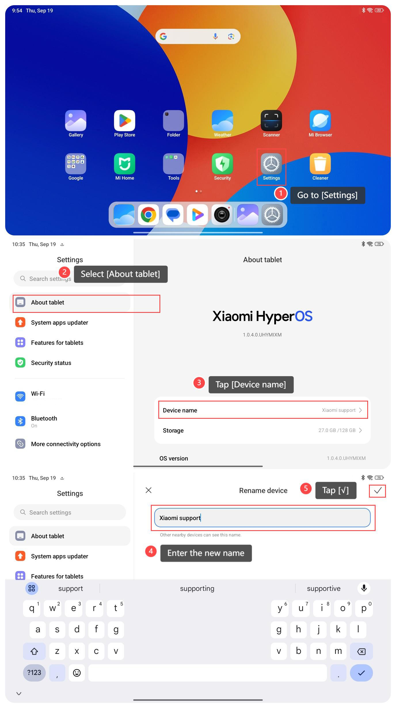 4. 장치 이름을 편집할 수 있는 화면을 볼 수 있습니다. 태블릿에 원하는 새 이름을 입력합니다.