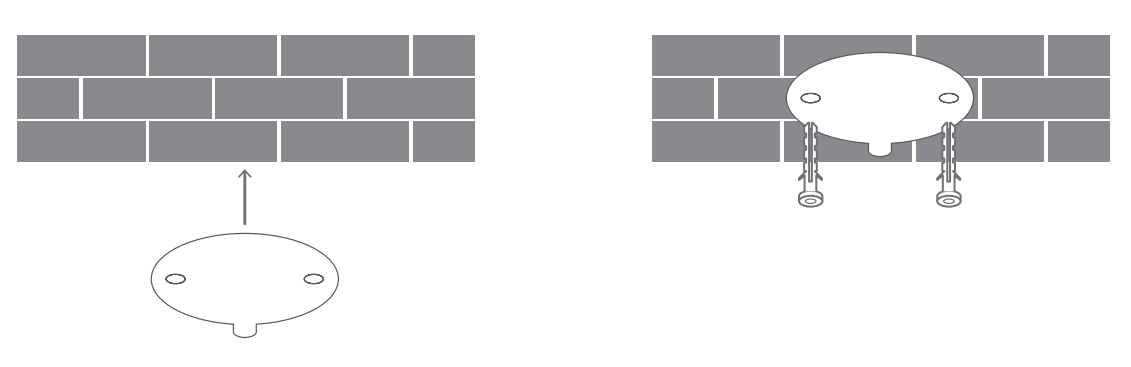 3. 화살표가 바깥쪽을 향하도록 베이스 면을 유지하고 베이스를 구멍에 맞춥니다. 나사를 삽입한 다음 Phillips 헤드 스크루드라이버로 벽 플러그에 조입니다.