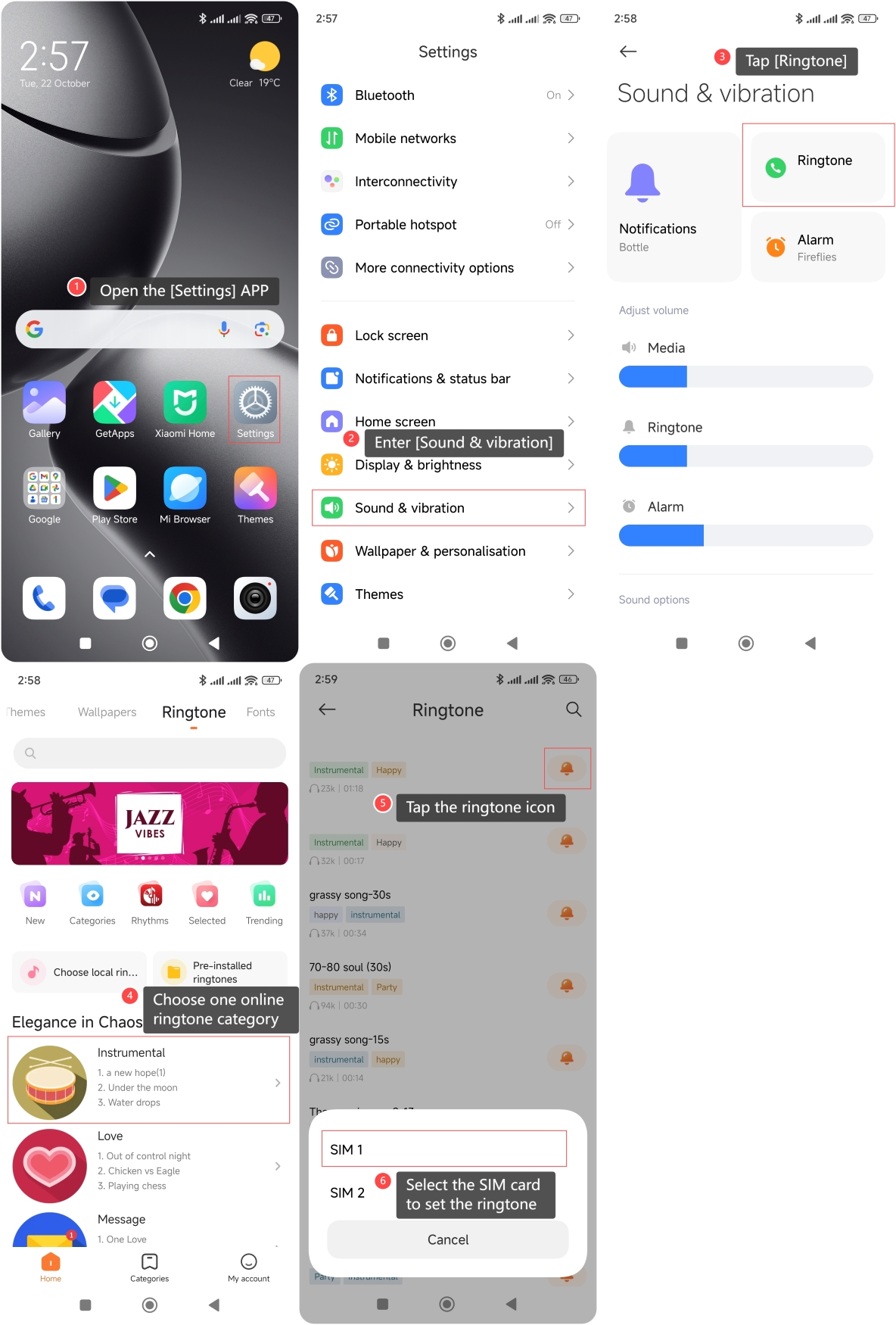6. SIM 카드를 선택하여 벨소리를 설정합니다.