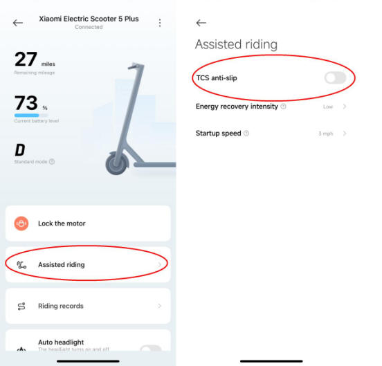 A: Xiaomi Electric Scooter 5 Plus는 기본적으로 비활성화되어 있는 TCS(트랙션 컨트롤 시스템)를 지원합니다. 활성화해야 하는 경우 스쿠터를 Mi Home/Xiaomi Home APP에 연결하고 Mi Home/Xiaomi Home APP >> [Xiaomi Electric Scooter 5 Plus] >> [Assisted riding]>> [ TCS 미끄럼 방지]를 활성화하십시오.
