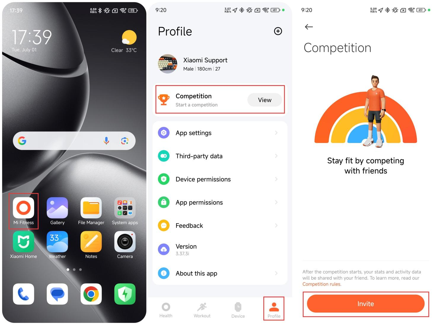Mi Fitness 앱을 통해 친구들과 일주일 동안 경쟁을 시작할 수도 있습니다. 대회를 시작하여, 친구들을 7일 챌린지에 초대하여 체력 포인트를 비교하고, 서로에게 동기를 부여하세요. 주말에 가장 많은 점수를 얻은 사람은 독점 트로피를 받게 됩니다.