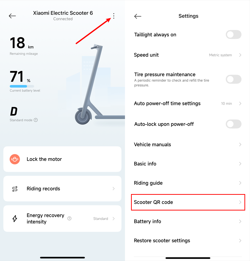 Q4: Xiaomi Electric Scooter 6 을(를) 연결하기 위한 QR 코드 는 어떻게 찾나요?