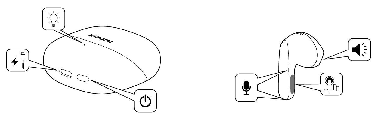 케이스를 연 후 기능 버튼을 2초 동안 길게 누르십시오. 충전 케이스 표시등이 흰색으로 깜박이며 Xiaomi Buds 5 Pro 가 연결을 기다리고 있음을 나타냅니다. 1분 이내에 연결이 설정되지 않으면 Xiaomi Buds 5 Pro 가 절전 모드로 들어가고 표시등이 꺼집니다.