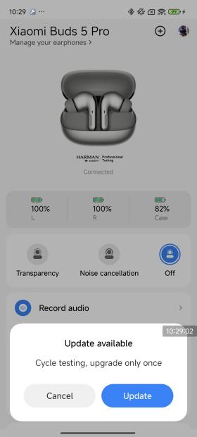 A: 1. Xiaomi Earbuds 앱을 최신 버전으로 업데이트하십시오.