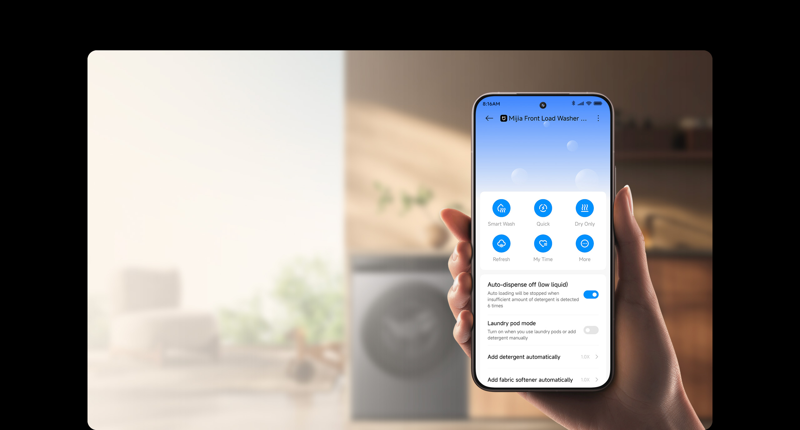 Les mises à jour du micrologiciel offrent en permanence de nouveaux programmes de lavage, versions et fonctionnalités. Les mises à jour sont synchronisées entre l'application Xiaomi Home et le panneau de commande, garantissant ainsi une expérience constamment optimisée.