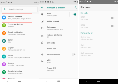 Método de configuración específico: Configuración>>Tarjetas de red e Internet>>SM, seleccione Tarjeta SM.