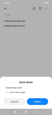 "¿Eliminar esta nota?" aparecerá después de deslizar hacia arriba la nota, y luego puede elegir "No volver a mostrar". Si marca la opción "No volver a mostrar", la operación de acceso directo posterior eliminará directamente la nota.