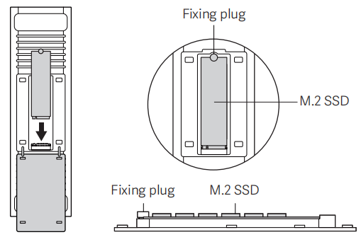 Para el puerto M.2, por favor consulte el manual de instrucciones para los pasos de instalación, y asegúrese de usar el tapón de fijación para una instalación segura; después de la instalación, también puede comprobar si el disco duro se reconoce correctamente en la interfaz de administración web.