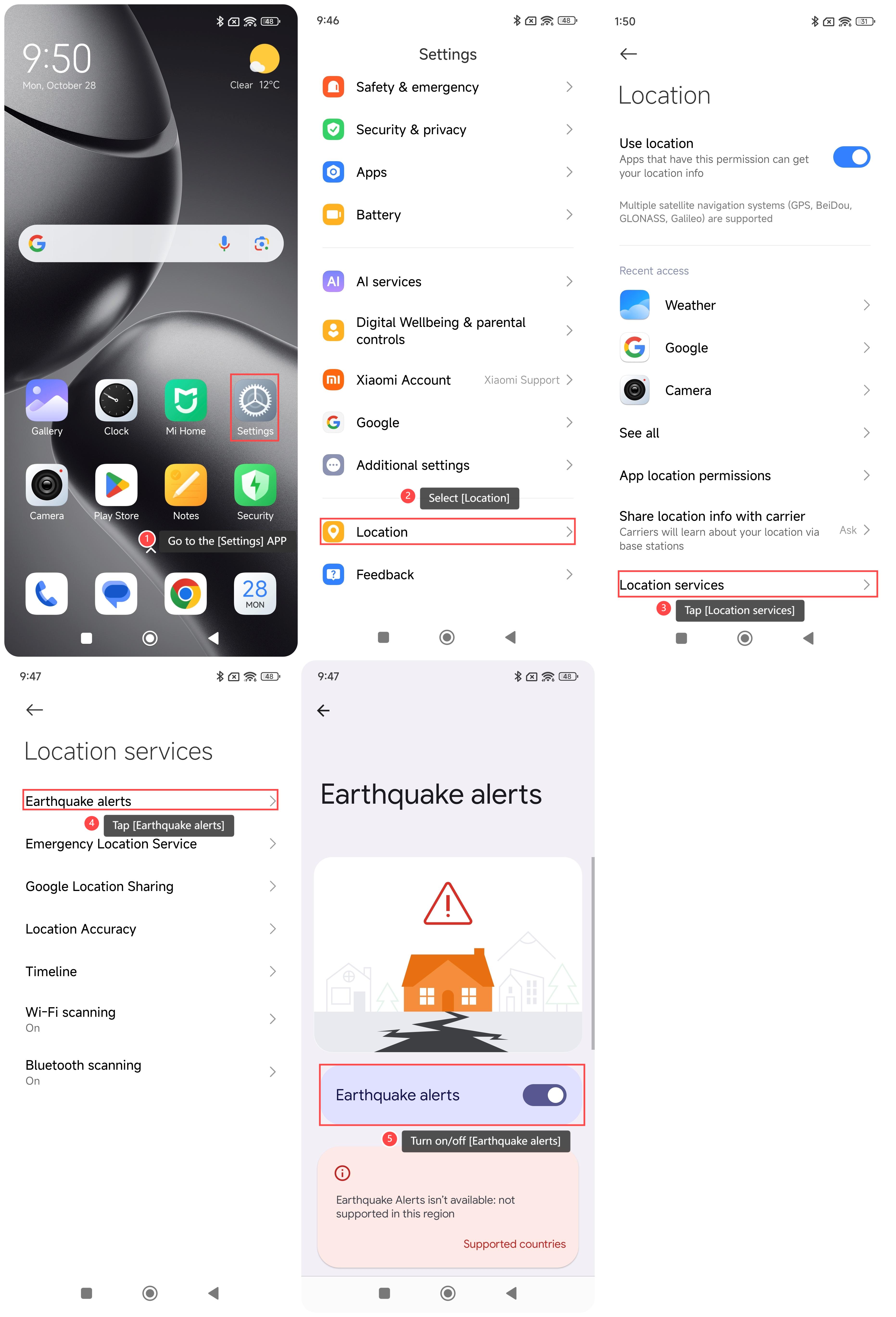 Para activar/desactivar las alertas de terremotos en su teléfono, consulte los siguientes pasos: