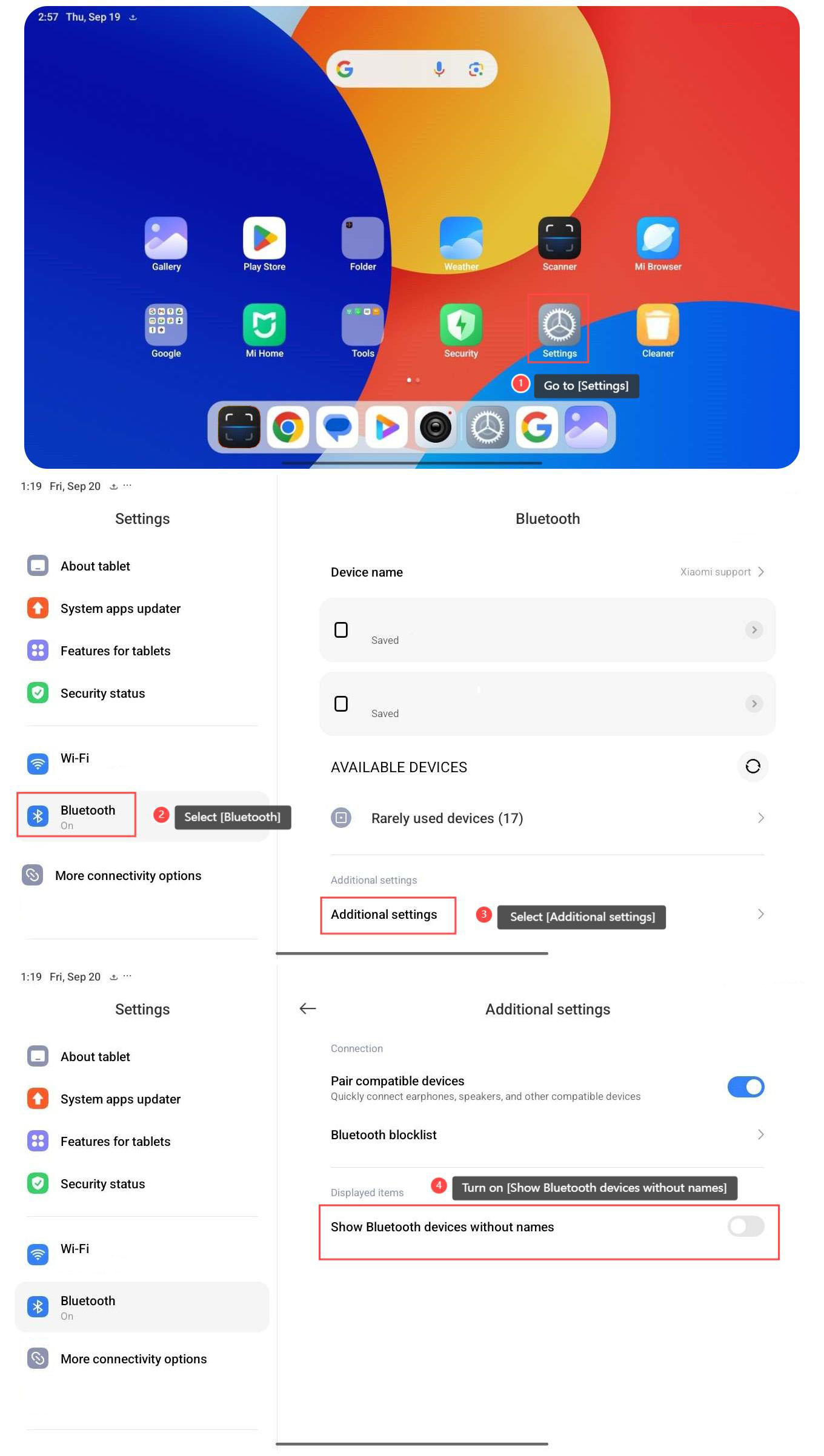 To show Bluetooth devices without names, please refer to the following steps: