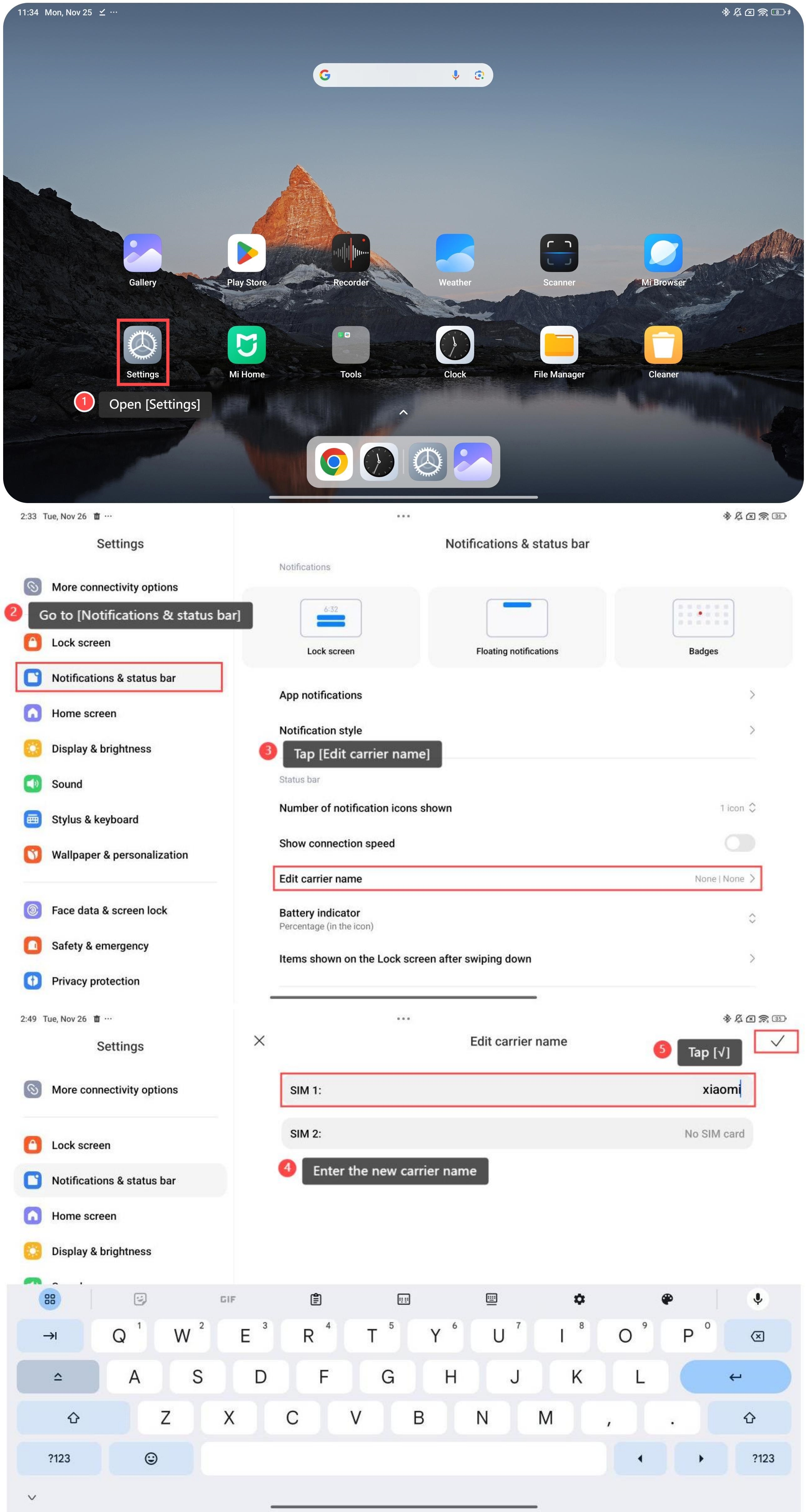 The Redmi Pad Pro 5G allows you to edit the carrier name. This helps you customize the carrier name to display something more meaningful to you, such as the name of your company, your favorite network provider, or even a fun nickname. While it doesn’t affect the tablet’s actual network settings or functionality.