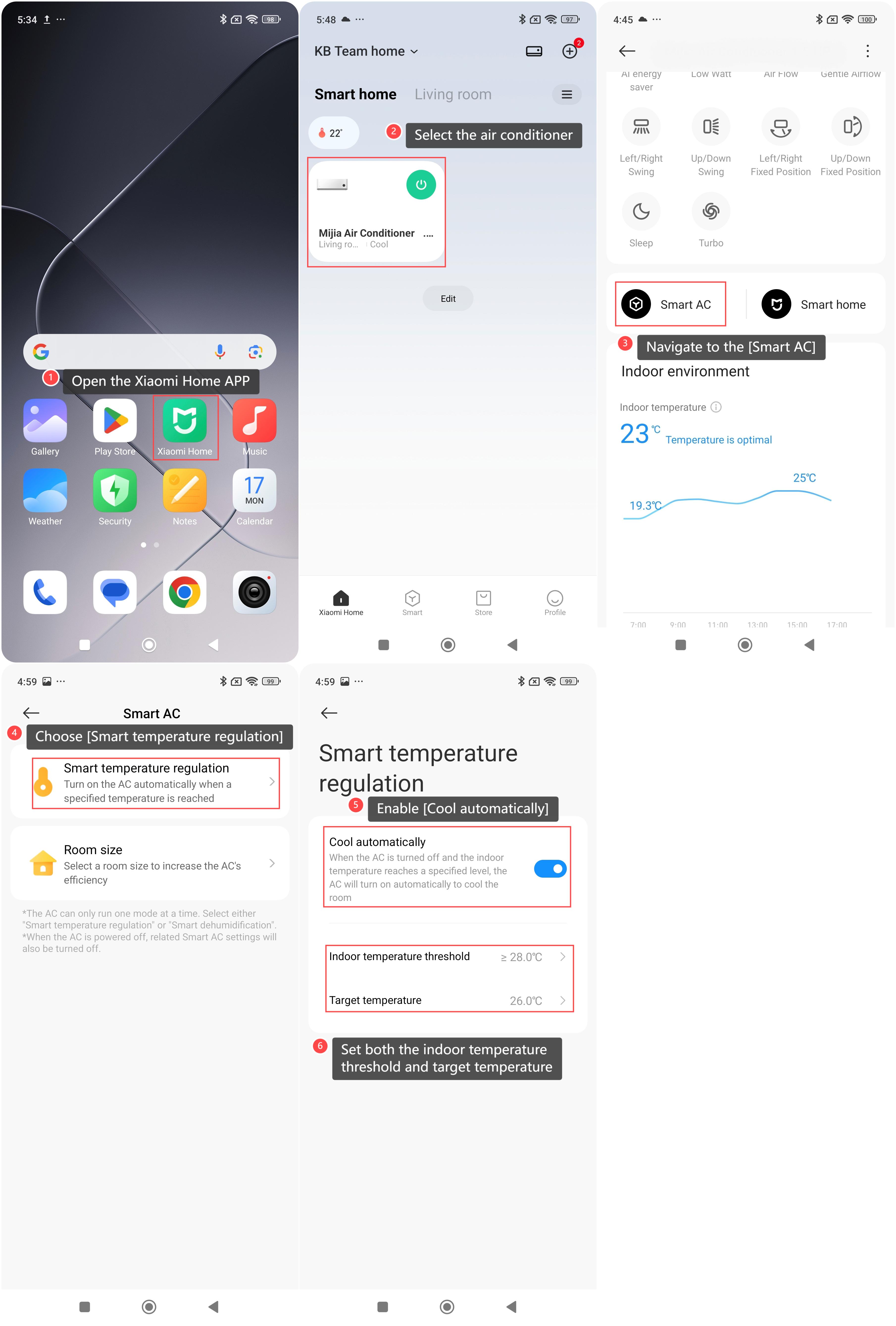 Once configured, the air conditioner will automatically power on and begin cooling the room as soon as the indoor temperature reaches the specified threshold, ensuring your home stays cool and comfortable without manual intervention.