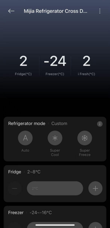 A: The Mijia Refrigerator Cross Door 502L display temperature is the set temperature, which can be different from the actual temperature. In addition, the refrigerator compressor is not continuously working, so the temperature inside the refrigerator will fluctuate, which is normal.