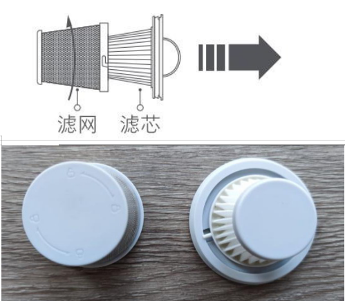| 1 | Kan niet opladen | Na volledig opladen en gebruik gedurende een korte tijd (niet langer dan 1 minuut) knippert het indicatielampje voor uitschakelen rood en wit | HEPA-filterelement geblokkeerd |