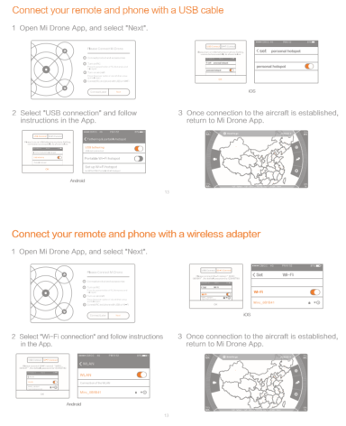 Toegepast op: Mi Drone Overzicht 1. V: Is er iets speciaals voor de Mi Drone? A: Makkelijk te bouwen, makkelijk te gebruiken. 2. V: Zijn er grenzen aan het gebruik van de Mi Drone? A: Dit product is niet geschikt voor mensen onder de 18. Blijf uit de buurt van vliegvelden, spoorwegen, snelwegen, hoogbouw, elektriciteitskabels en gebieden waar drones verboden zijn. Blijf uit de buurt van basisstations voor telecommunicatie, krachtige antennes en gebieden met complexe elektromagnetische signalen. De vliegafstand en vlieghoogte zijn onderworpen aan de voorschriften van de overheid en regelgevende instanties. Gebruik dit product niet in zones met beperkte toegang. Voor uw rechten en belangen, gelieve de veiligheidsinstructies op te volgen. De Mi Drone kan niet vliegen in no-positioning status, en kan ook niet vliegen in gebouwen. 3. V: Wat is de naam van de app en wat voor soort apparaat kan het gebruiken? A: Het heet Mi Drone, kan gedownload worden van de App Store (iOS) of Play Store (Android) of andere ondersteunde app stores, en kan ook de QR-code op de handleiding scannen om te downloaden. De app ondersteunt toestellen met iOS8.0+ of Android 4.0+ met een scherm dat niet groter is dan 5,7 inch. Bijzonderheden 1. V: Wat is de structuur van de Mi Drone? A: De structuur van de Mi Drone ziet er als volgt uit: