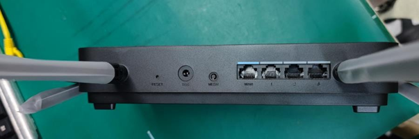 A: Xiaomi Router AX3200 heeft: Reset-gat, stroomaansluiting, netwerkknop en 4 netwerkpoorten. Zijkant: Reset-gat, stroomaansluiting, netwerkknop en 4 netwerkpoorten.