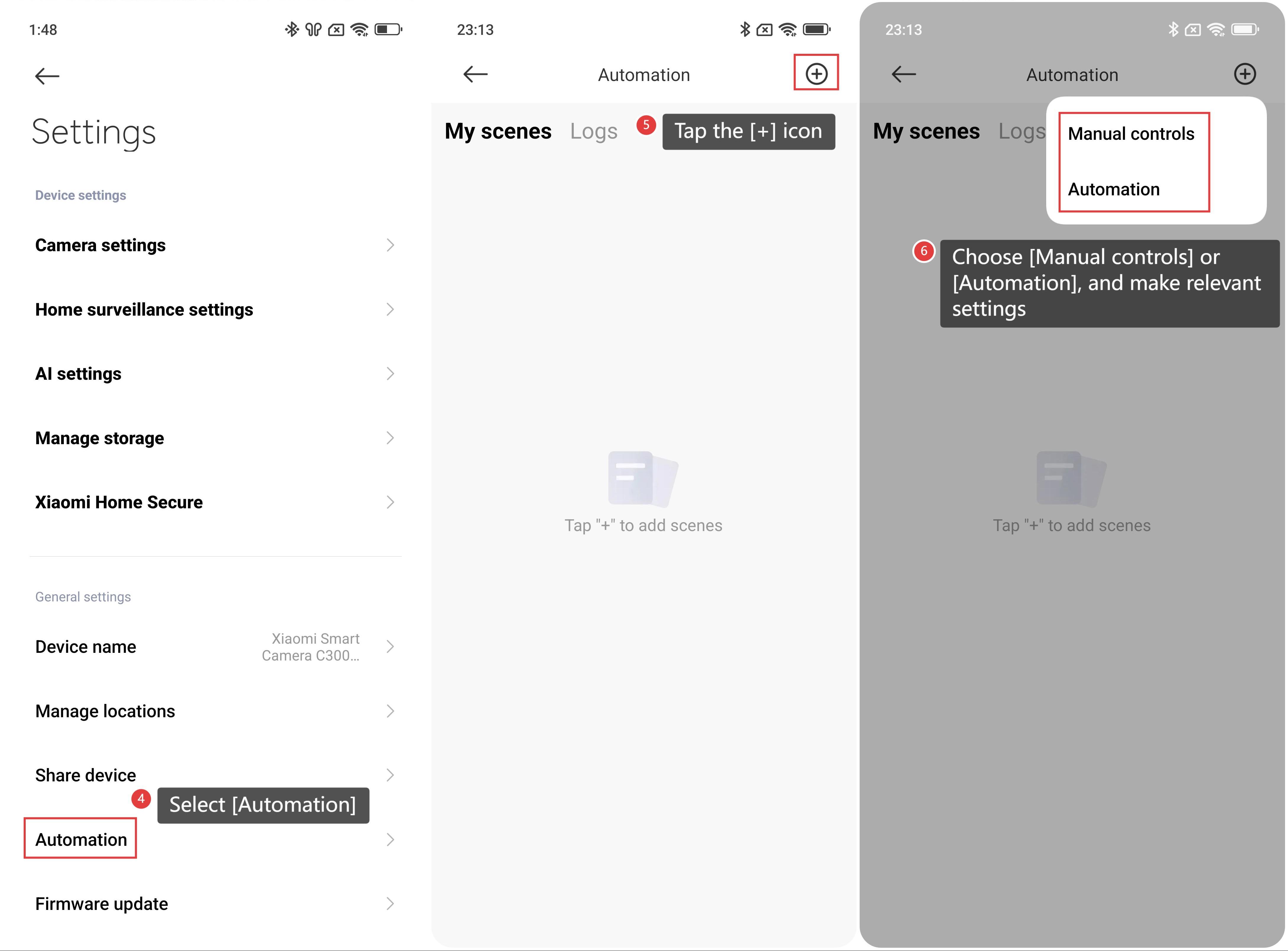 De Xiaomi Smart Camera C300 Dual is uitgerust met een automatiseringsfunctie zodat je camera aan je wensen voldoet zonder constante handmatige controle. Dit stelt je in staat om een slimme scène te creëren over hoe de camera zich in verschillende situaties gedraagt zonder jouw directe tussenkomst.