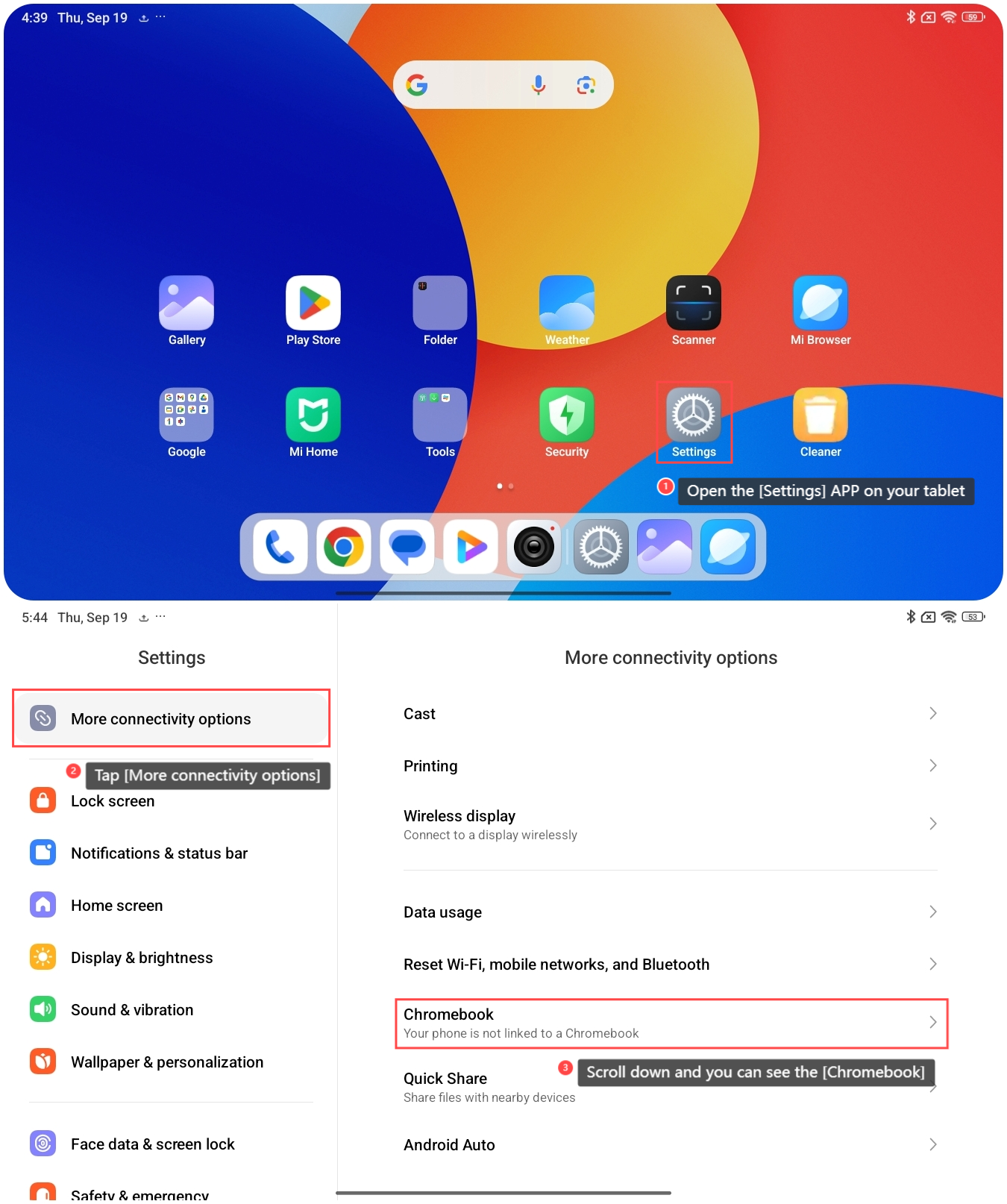 How to link the Redmi Pad SE 8.7 4G to Chromebook?
