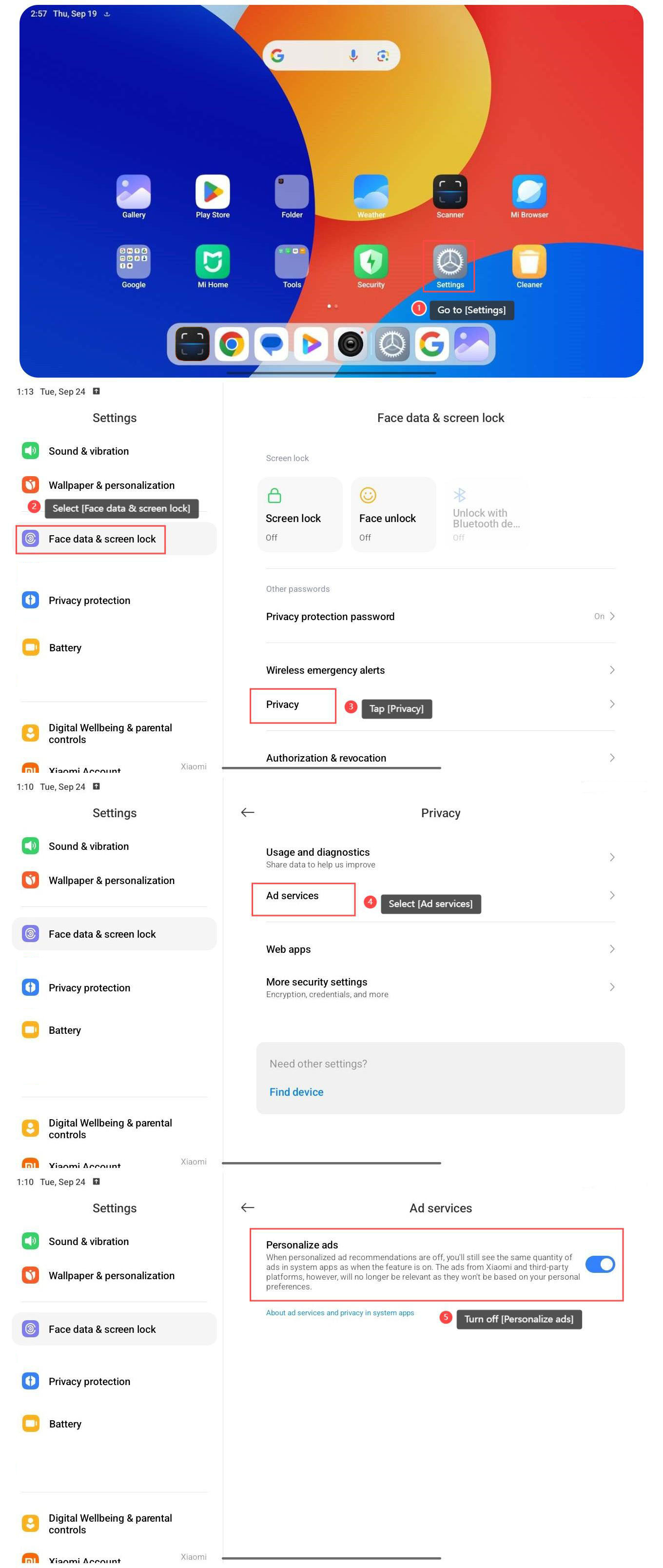 When personalized ad recommendations are off, you will still see the same quantity of ads in system Apps as when the feature is on. The ads from Xiaomi and third-party platforms, however, will no longer be relevant as they won’t be based on your personal preference.