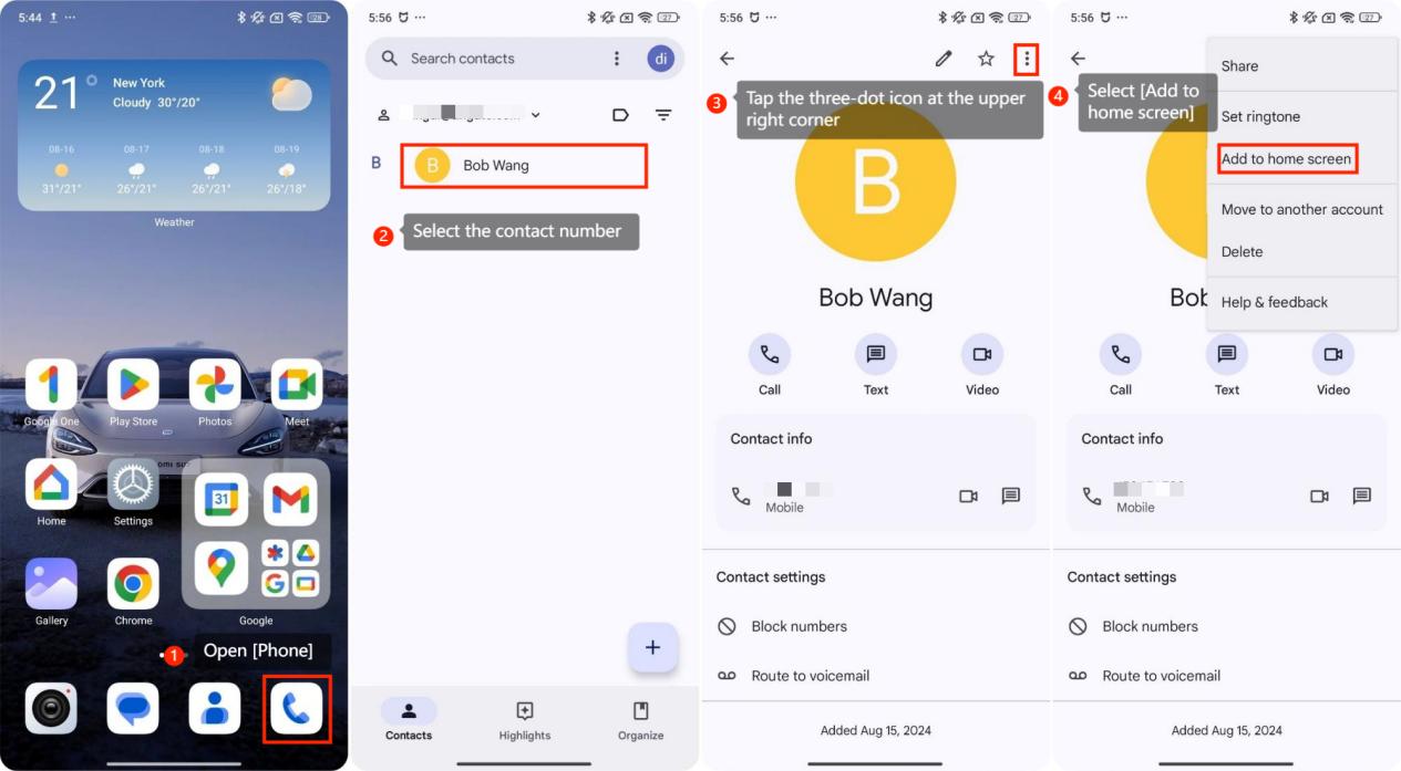 This feature on the phone allows you to add frequently used contacts directly to the home screen of the phone as shortcuts. You can quickly make calls, send text messages or perform other communication operations without having to open the address book to search. In addition, by placing contacts on the home screen, you can stay in touch with important contacts more efficiently, improving the convenience and efficiency of daily use.