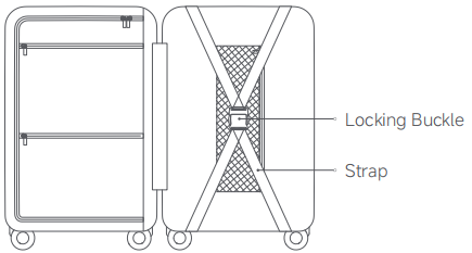 6. Q: What is the interior structure of the Xiaomi Expandable Luggage? A: The interior structure of the Xiaomi Expandable Luggage is listed below: The interior structure consists of front cover and rear cover. The front cover is designed as a closed U form, with two independent bags. The rear cover has a strap, with an independent bag used to put away small objects in the empty space of the luggage.