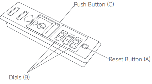 10. Q: How to reset the code of the Xiaomi Expandable Luggage? A: The initial code of the lock is set to 0-0-0. It is recommended that you set a personal code. Please refer to the following steps to reset the code: 1. Set the dials (B) to 0-0-0 to unlock the lock; 2. Use the tip of a pen or a tool to press the reset button (A) until you hear a click; 3. Turn the dials (B) to set your personal code (such as 8-8-8; 4. Push the push button (C) along the direction indicated by the arrow until you hear a click, to make the reset button (A) pop out. The lock is unlocked now. A personal code has been set successfully. If you need to reset the code again, repeat steps 1 to 4. Note: If you forget your code, you cannot reset it, open the lock, or open the luggage. Therefore, be sure to remember your code.