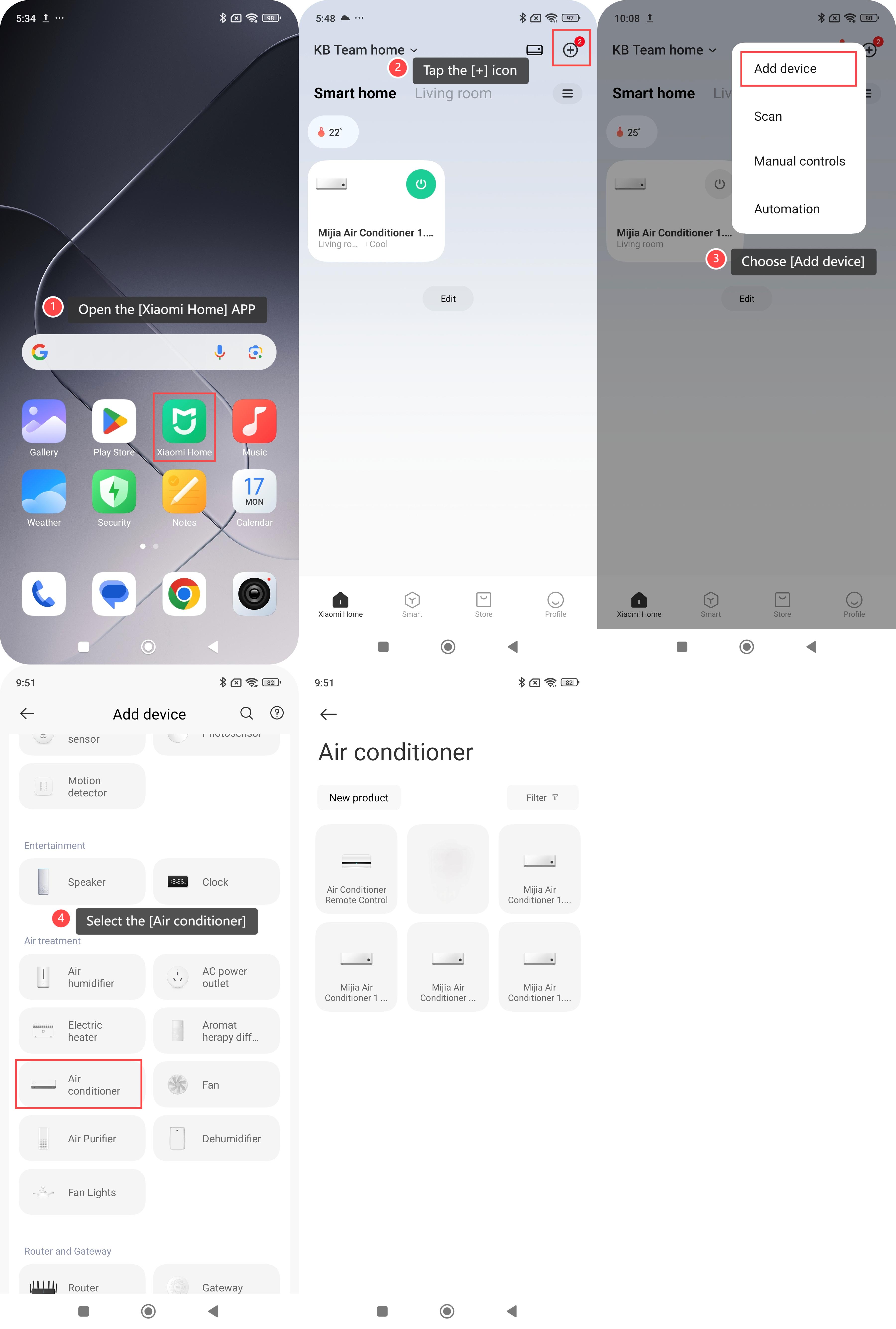 To connect the air conditioner to the Xiaomi Home APP, please refer to the following steps: