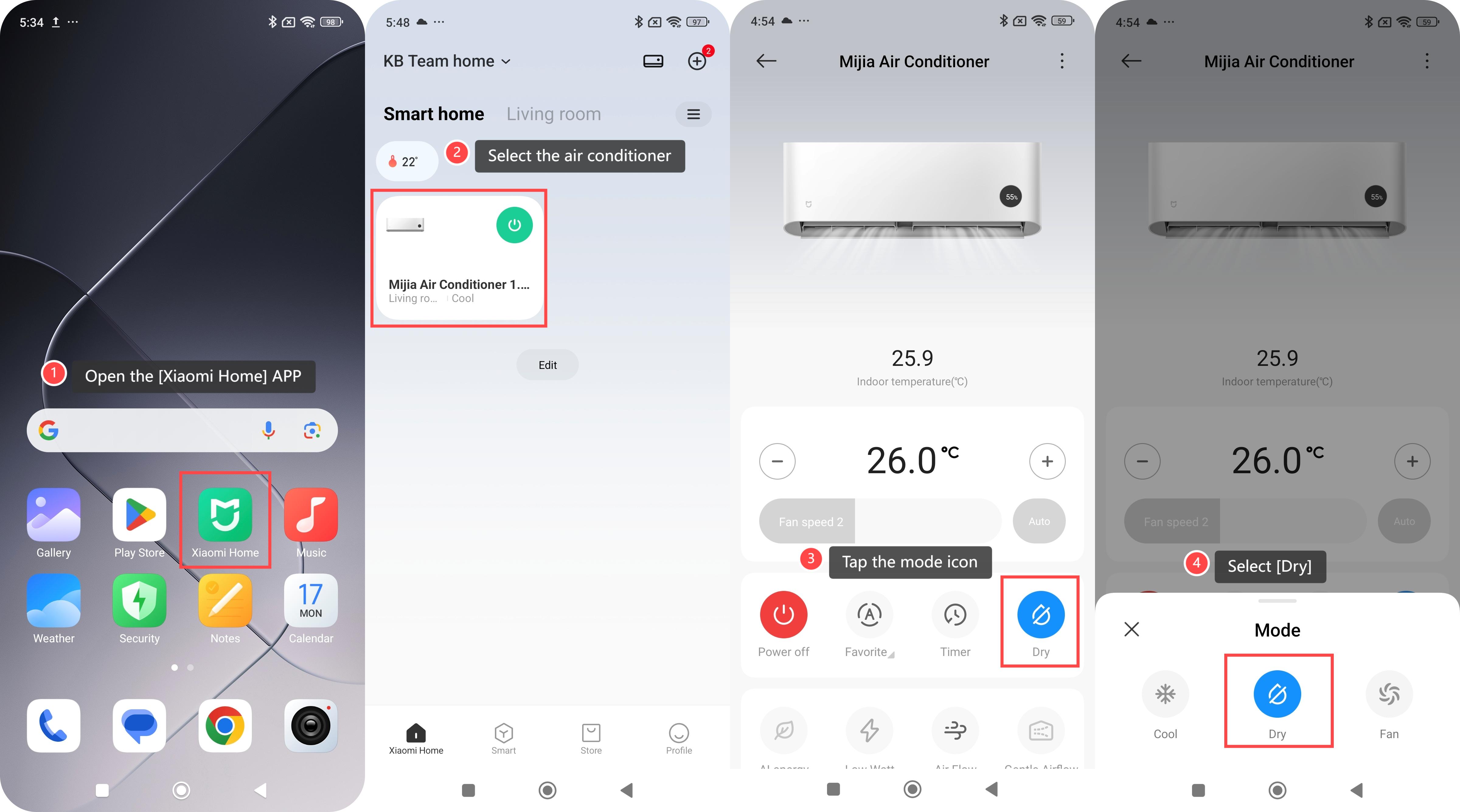 To use the Dry mode on the Xiaomi Home APP, please refer to the following steps: