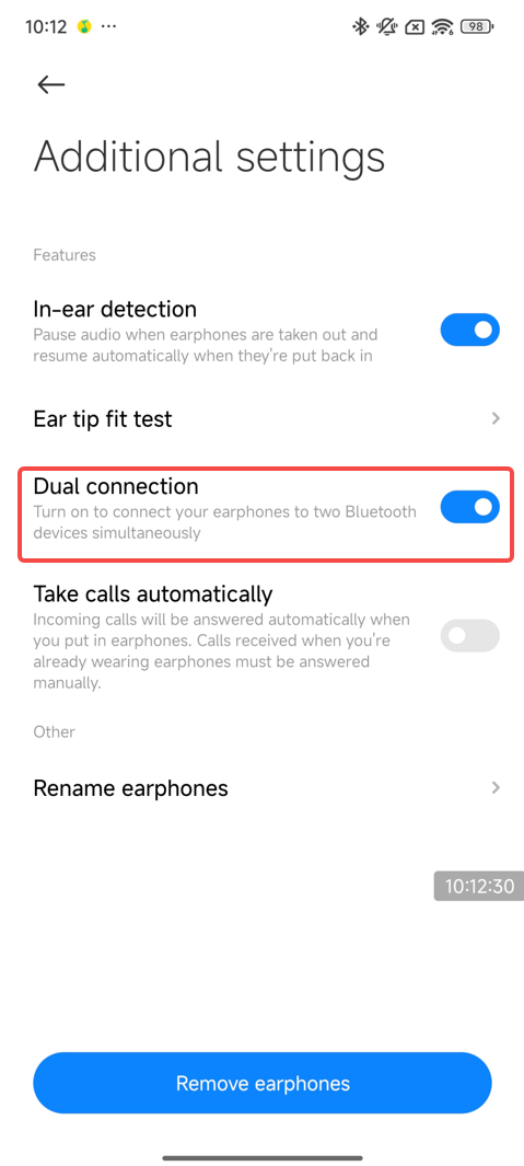 2. Turn off Bluetooth on the phone, turn it back on, and wait for the earbuds and phone to automatically reconnect to restore.