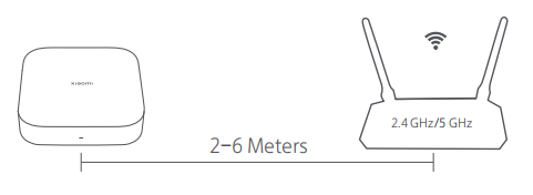 For Wi-Fi networking, it is recommended to place the hub 2–6 meters away from the router to which the hub will be connected, and there should be no metal obstacles between the hub and the router. If using wired networking, please skip this step;