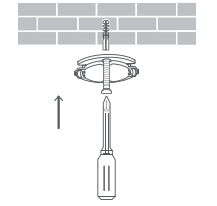 Place the side of the base with arrows facing forward, and then align the holes. Insert the screws and then tighten them into the wall plugs with a Phillips screwdriver.