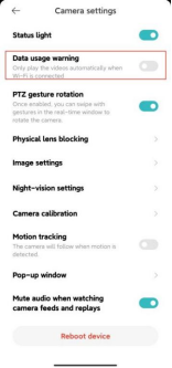 Q8: How to turn on/off Data usage warning on the Xiaomi Smart Camera C201?