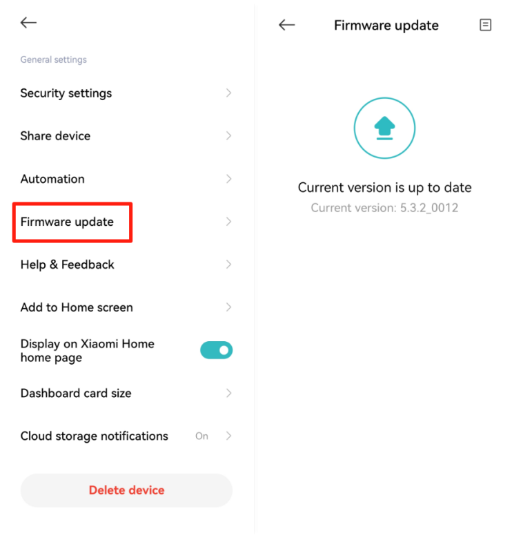 Check if the camera firmware version and Xiaomi Home App version need to be updated.