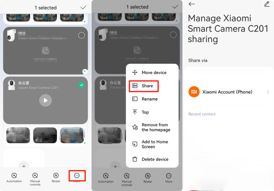 A: To share the Xiaomi Smart Camera C201 with other people, please refer to the following methods: