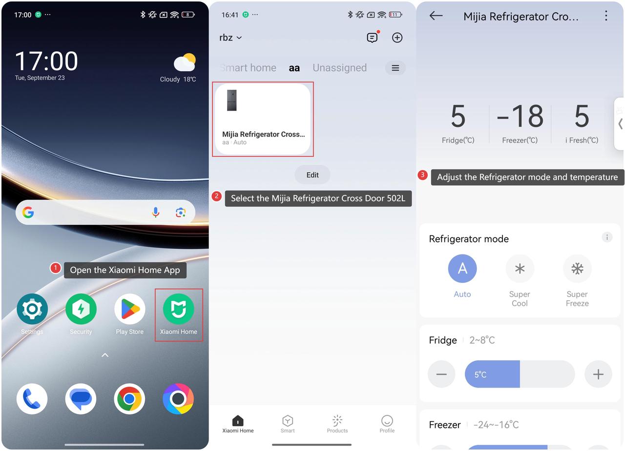 To set the Mijia Refrigerator Cross Door 502L temperature in the Xiaomi Home App, please refer to the following information: