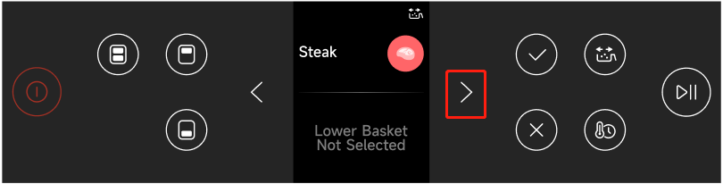 One-touch synchronization function: The dishes and side dishes can be prepared at the same time. If you want to set different settings for each basket, press the "Sync" button and select the temperature and duration for each basket. Both baskets will be set at the same time.