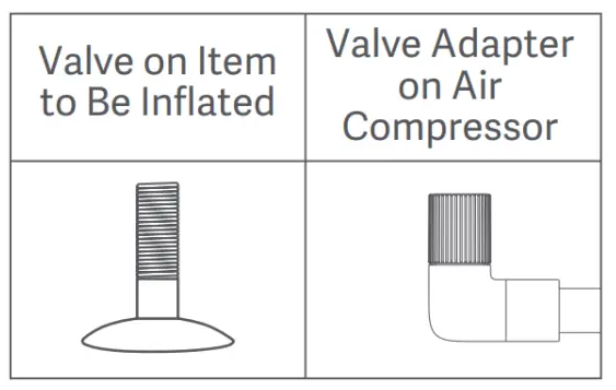 4. Ensure the quick-connect valve is properly aligned with the tire valve when in use. If air leakage occurs, reinsert the valve and check again.