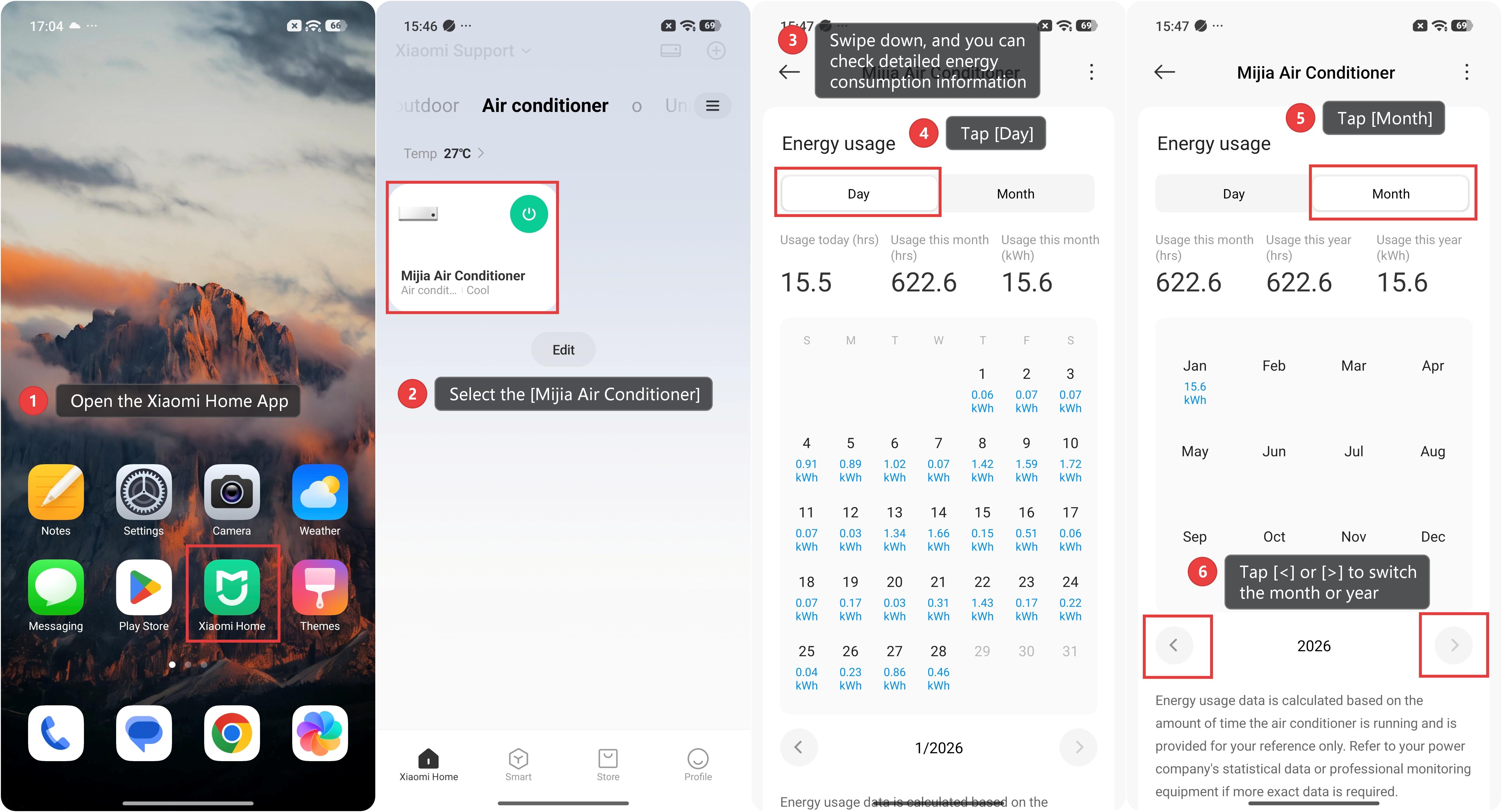 You can conveniently view the energy consumption statistics of your Mijia Air Conditioner in the Xiaomi Home App. By checking the daily, monthly, and yearly energy usage data, you can better understand its power consumption patterns, track electricity usage over time, and manage energy use more efficiently for daily operation and cost control.
