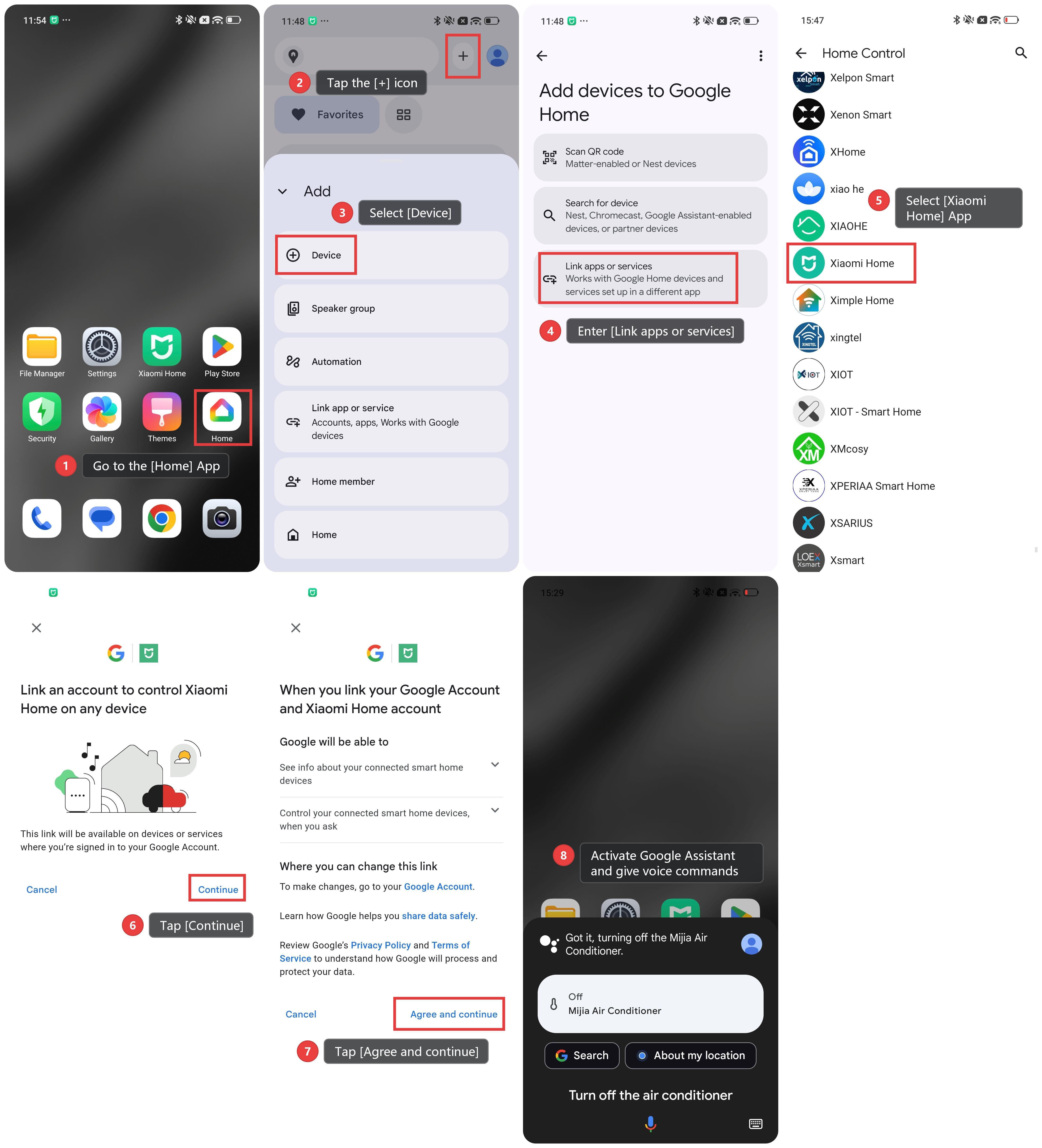 To use the Google Assistant to control the Mijia Air Conditioner, please refer to the following steps: