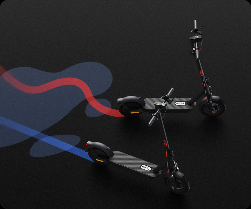 * Maksymalna prędkość w trybie sportowym: hulajnoga z w pełni naładowanym akumulatorem była testowana w trybie sportowym w środowisku o temperaturze otoczenia 25±5°C przy średniej prędkości wiatru nieprzekraczającej 3 m/s. Hulajnoga została przyspieszona w dodatkowym obszarze jazdy i utrzymała maksymalną prędkość w obszarze testowym. Osiągnęła 20 km/h zgodnie z pomiarem obrotomierza lub Bluetooth i deski rozdzielczej. Maksymalna prędkość może różnić się w zależności od kraju lub danego obszaru i podlega lokalnym regulacjom. Dane przetestowane przez producenta.