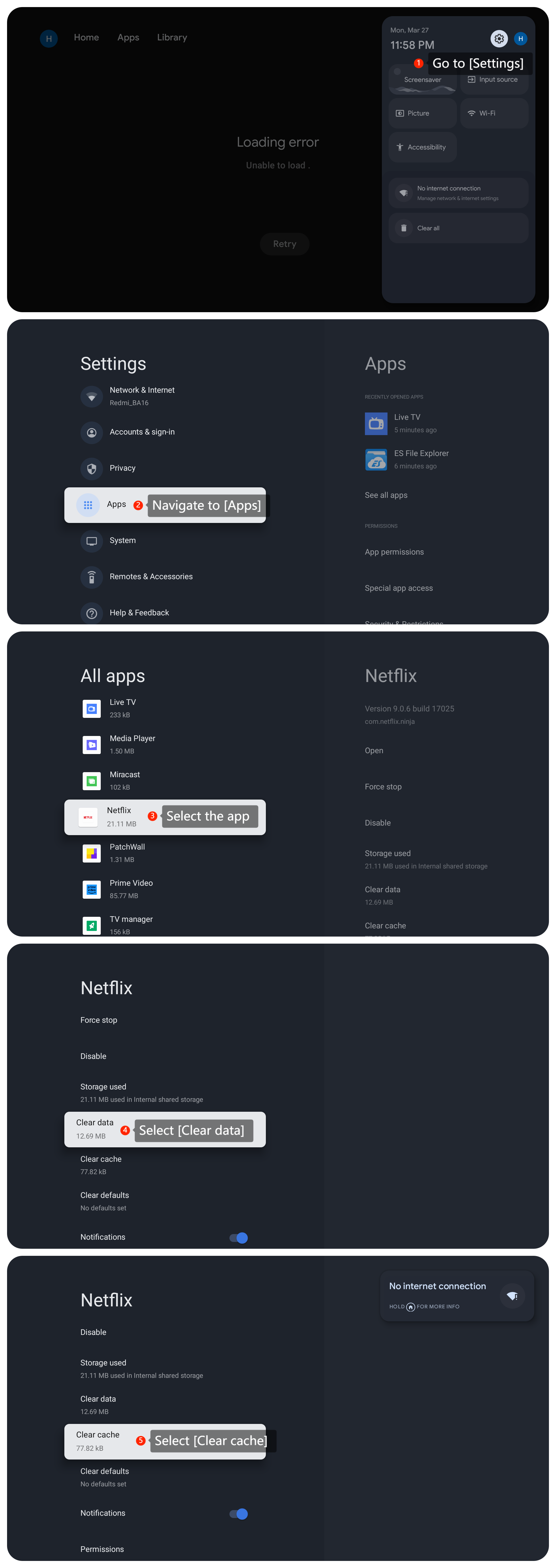 Jeśli nie można odtwarzać plików audio lub wideo online na telewizorze Xiaomi TV A Pro 43, zapoznaj się z poniższymi krokami rozwiązywania problemów: