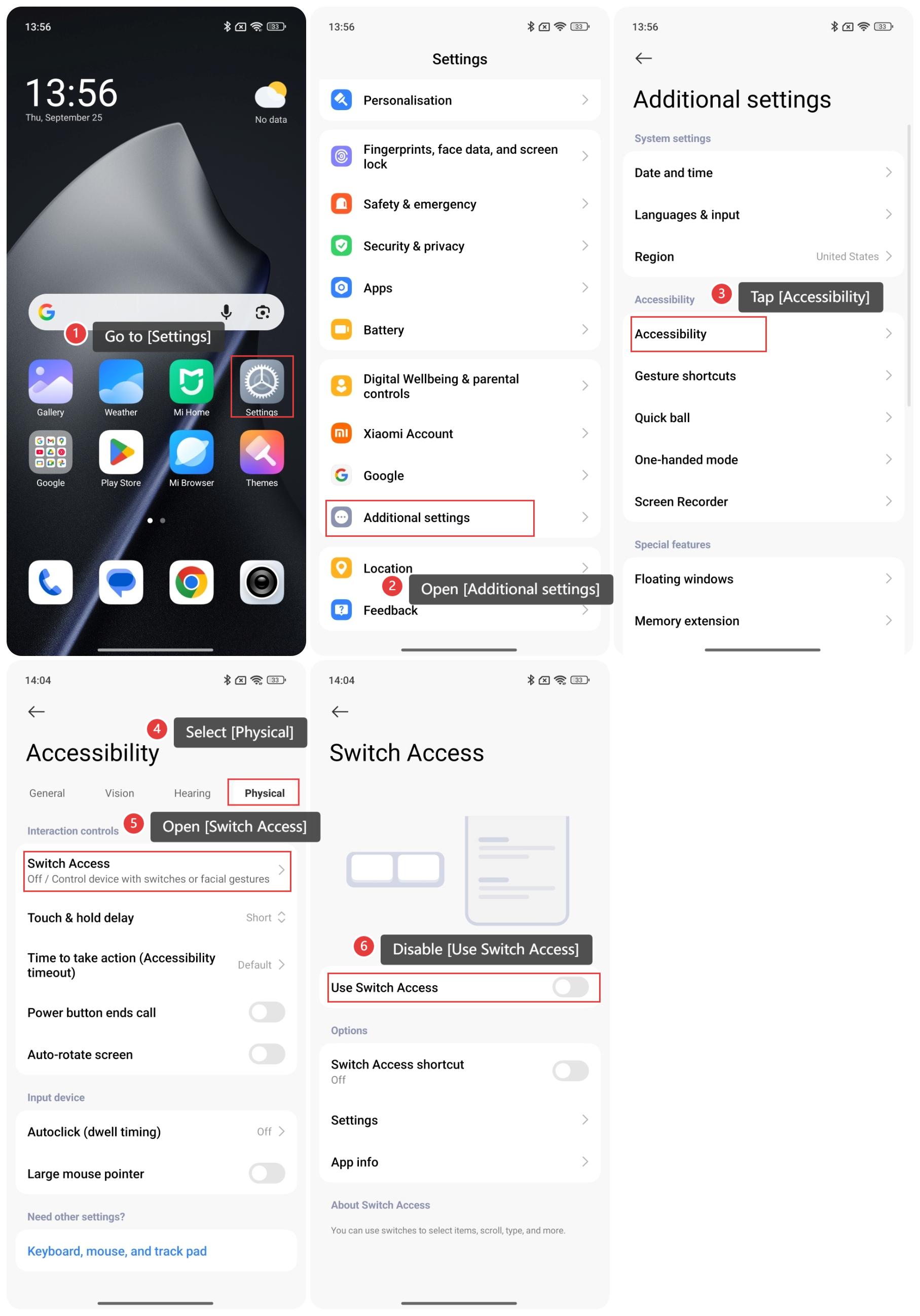 Wyłącz opcję [Użyj Switch Access].