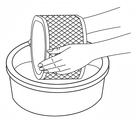 3. Umyj filtr czystą wodą lub standardowym detergentem do prania, ręcznie lub w pralce. Nie używaj wody powyżej 40 °C ani nie susz w suszarce.